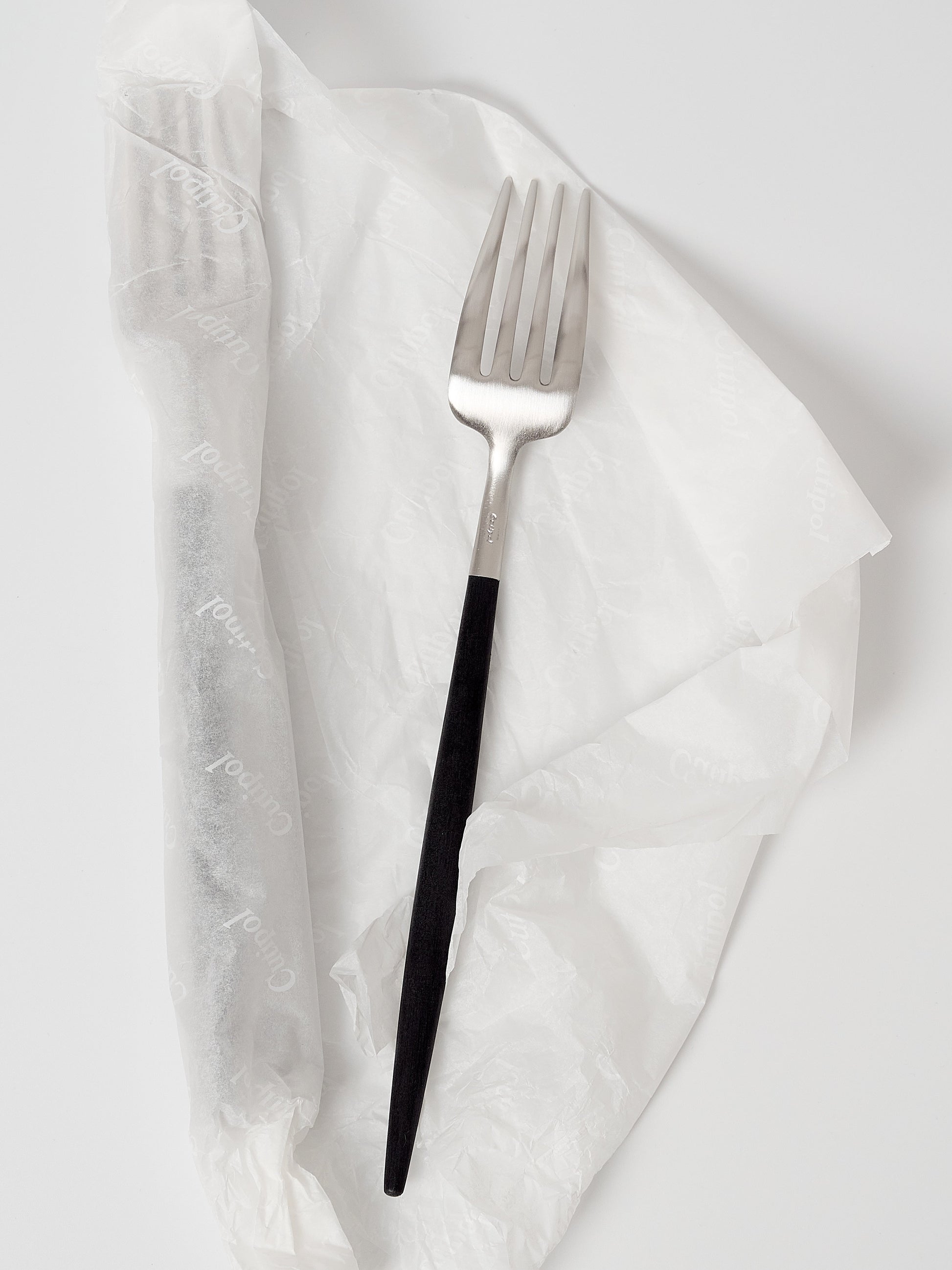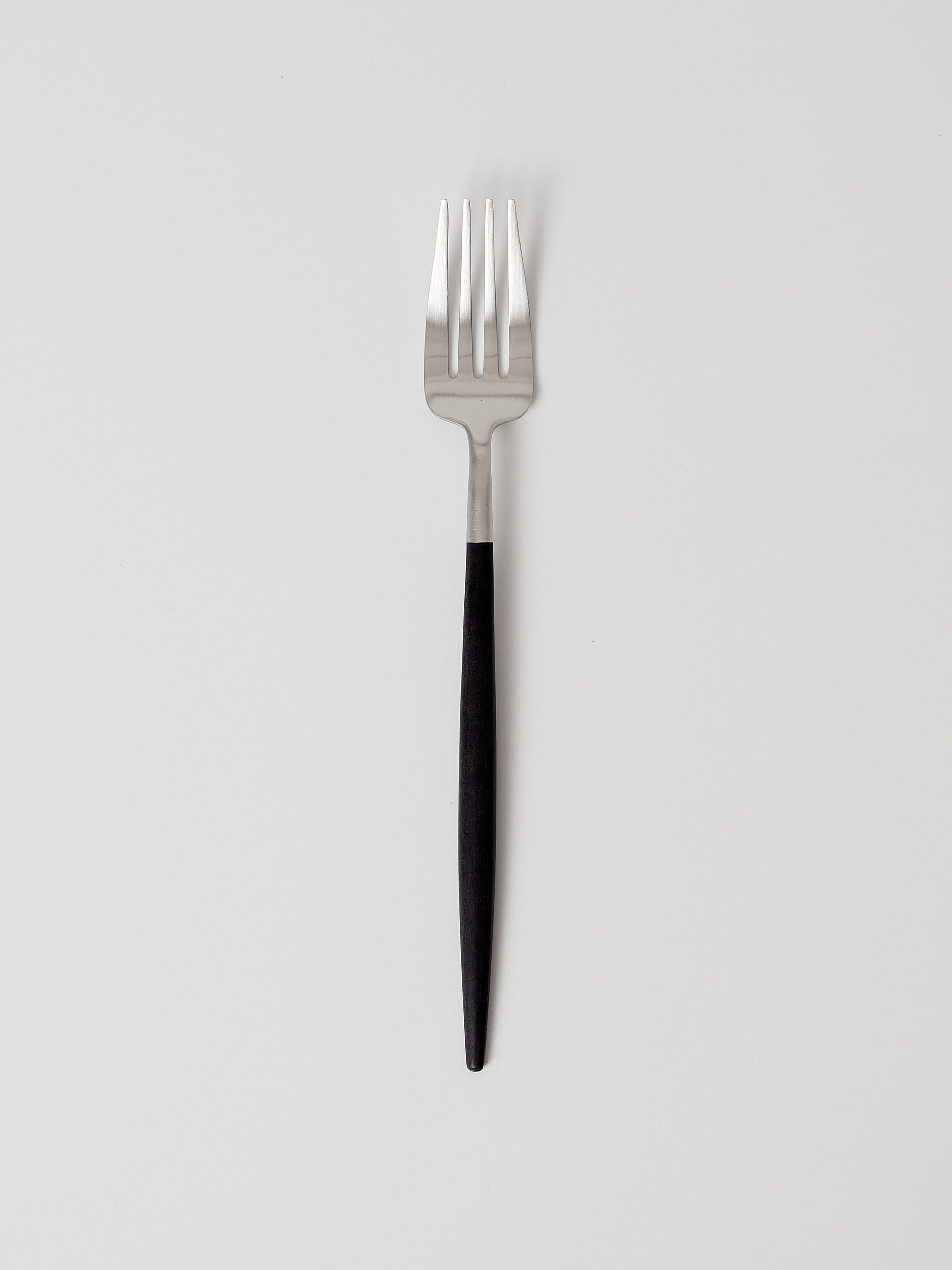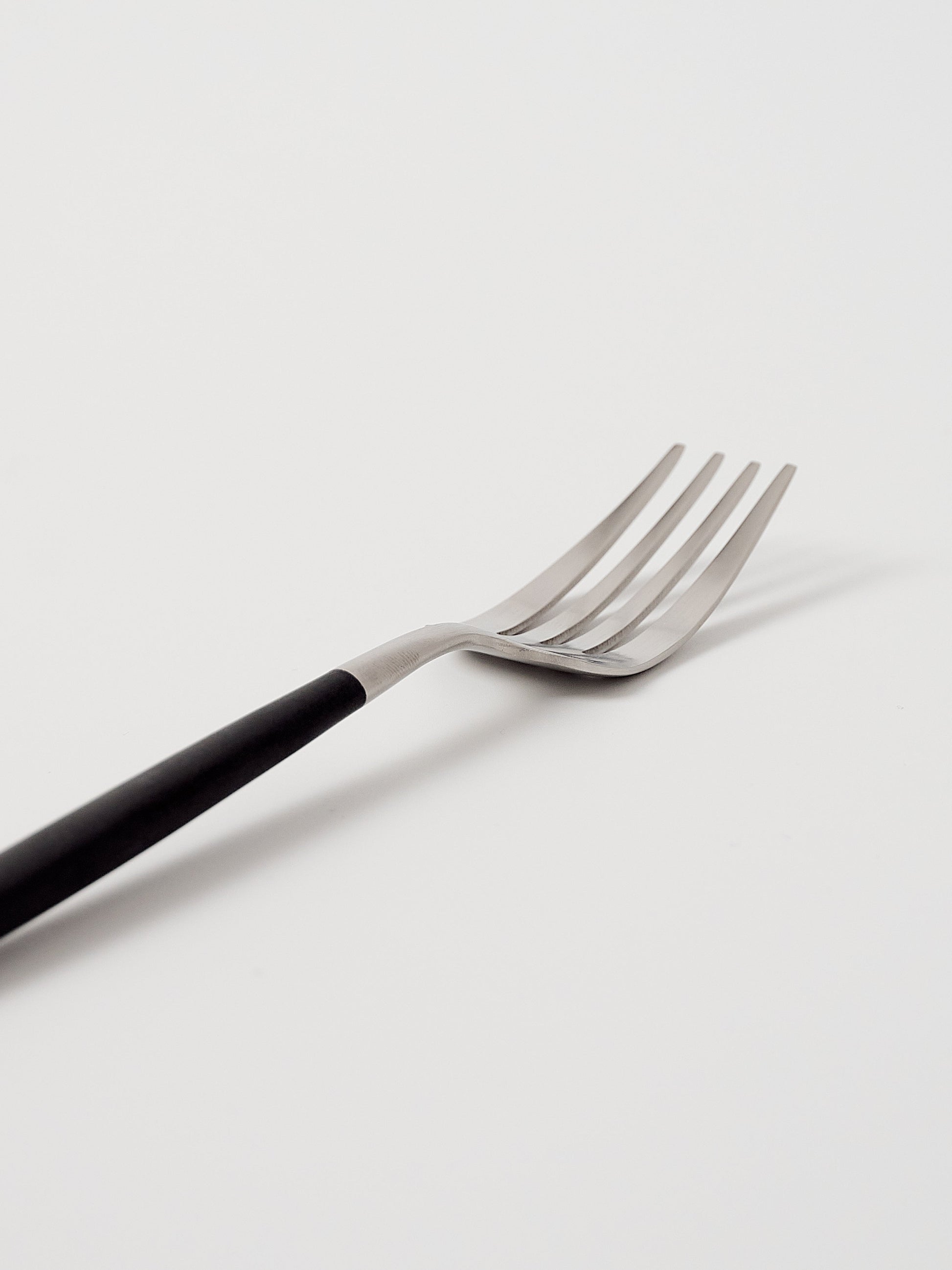 The Goa Fork brings Cutipol’s slim, balanced silhouette to everyday settings. Crafted in Portugal, it pairs a matte 18/10 stainless steel head with a smooth black resin handle that sits light and steady in hand. Designed by José Joaquim Ribeiro, the tapered profile reads clean on the table and works across casual meals and considered dinners. Sold individually to build or refresh a set with precision.