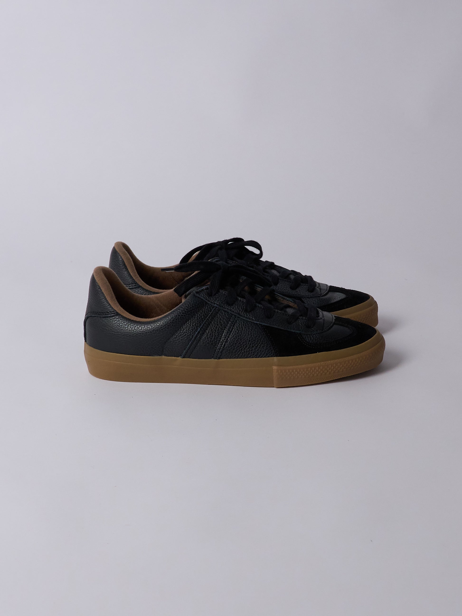 This updated version of the classic 1980s German Army Trainer from Reproduction of Found features a leather-based upper with suede detailing, tailored for everyday wear and inspired by skateboarding utility. It retains the clean, utilitarian silhouette of the original military design, reworked with a full gum rubber outsole for improved grip and durability. The combination of smooth leather and tonal suede creates subtle contrast and structure. Made in Slovakia, where the brand produces its skateboarding models, this version reflects a commitment to quality materials and archival design.