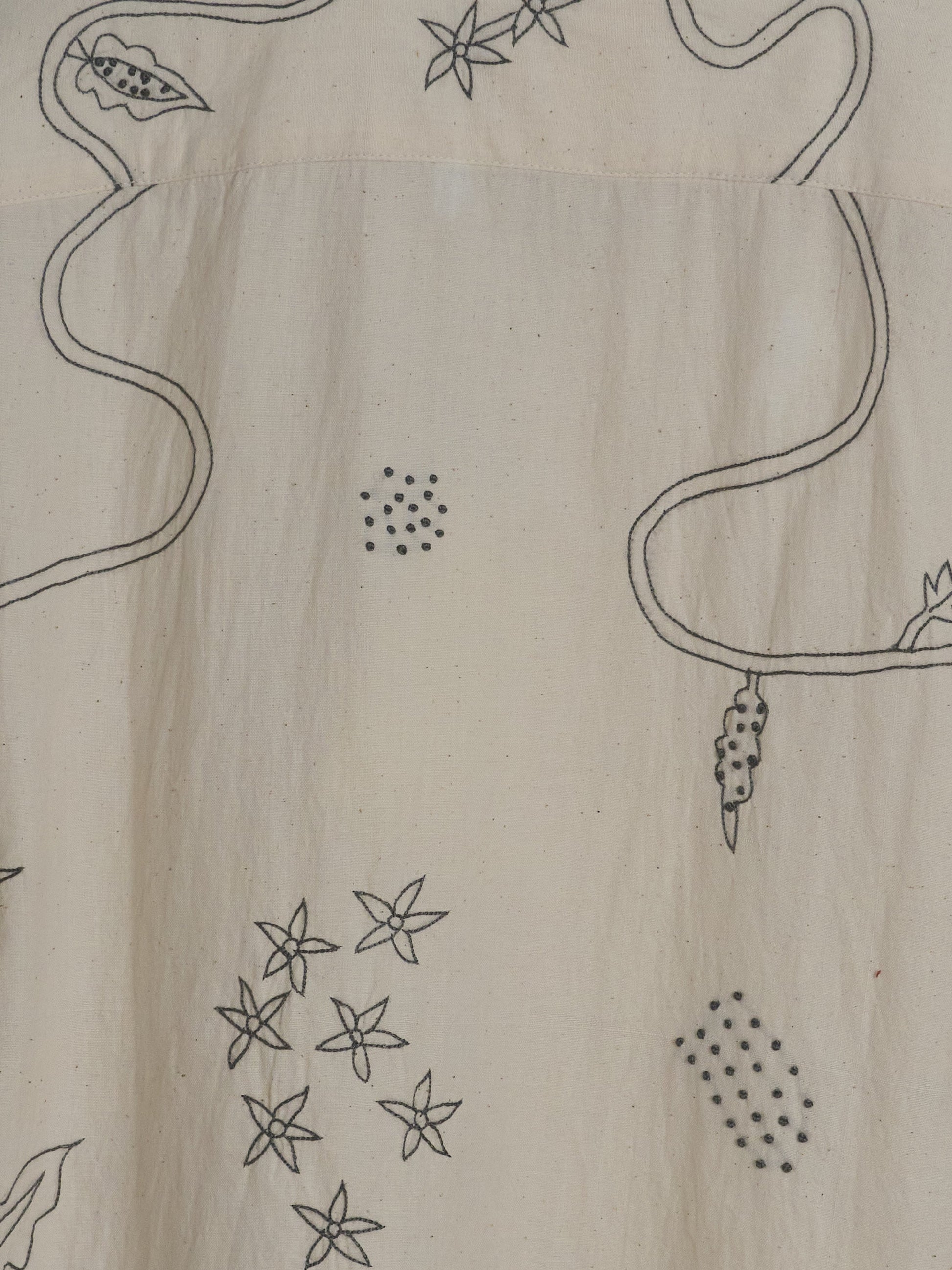 Step into effortless style with the Ronen Over Sized Camp Collar Shirt, a masterpiece of traditional craftsmanship and contemporary design. Crafted from 100% Khadi cotton, each shirt is hand-spun and woven by skilled Udyog Bharti artisans. The standout feature is the exquisite hand embroidery, performed by Md Ashraf from Bengal using the intricate Ari chain stitch technique. This detailed process ensures that each panel is uniquely decorated before being assembled by a single tailor, highlighting exceptional quality and individuality.