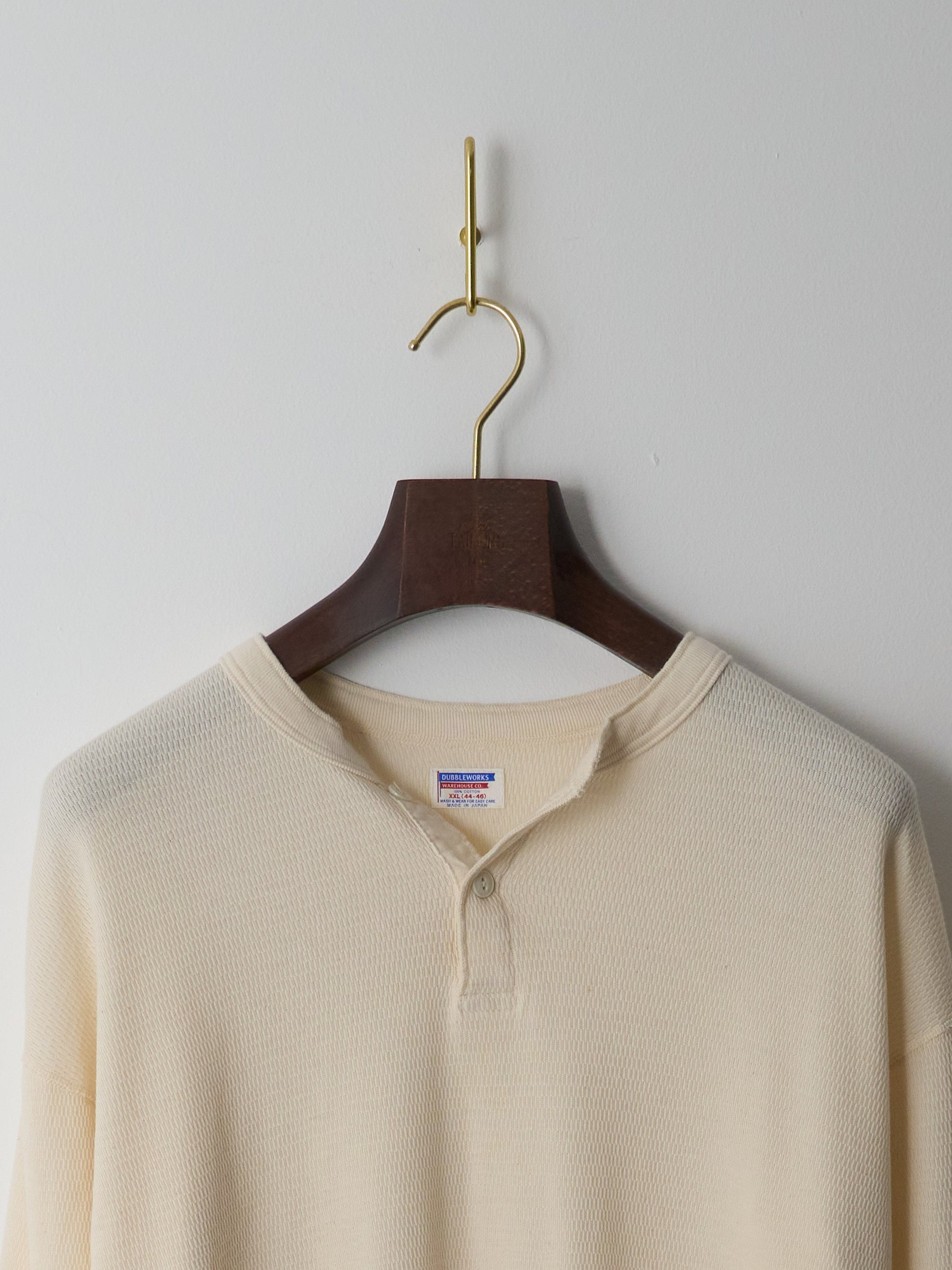 Stay warm and stylish with the Dubbleworks Thermal Henley, crafted in Japan from premium 100% cotton. Its semi-waffle knit traps body heat while remaining breathable, making it perfect for layering in cooler weather or wearing on its own. Thoughtfully detailed with contrast buttons, this slim-fitting henley combines vintage appeal with modern craftsmanship for a timeless wardrobe essential.