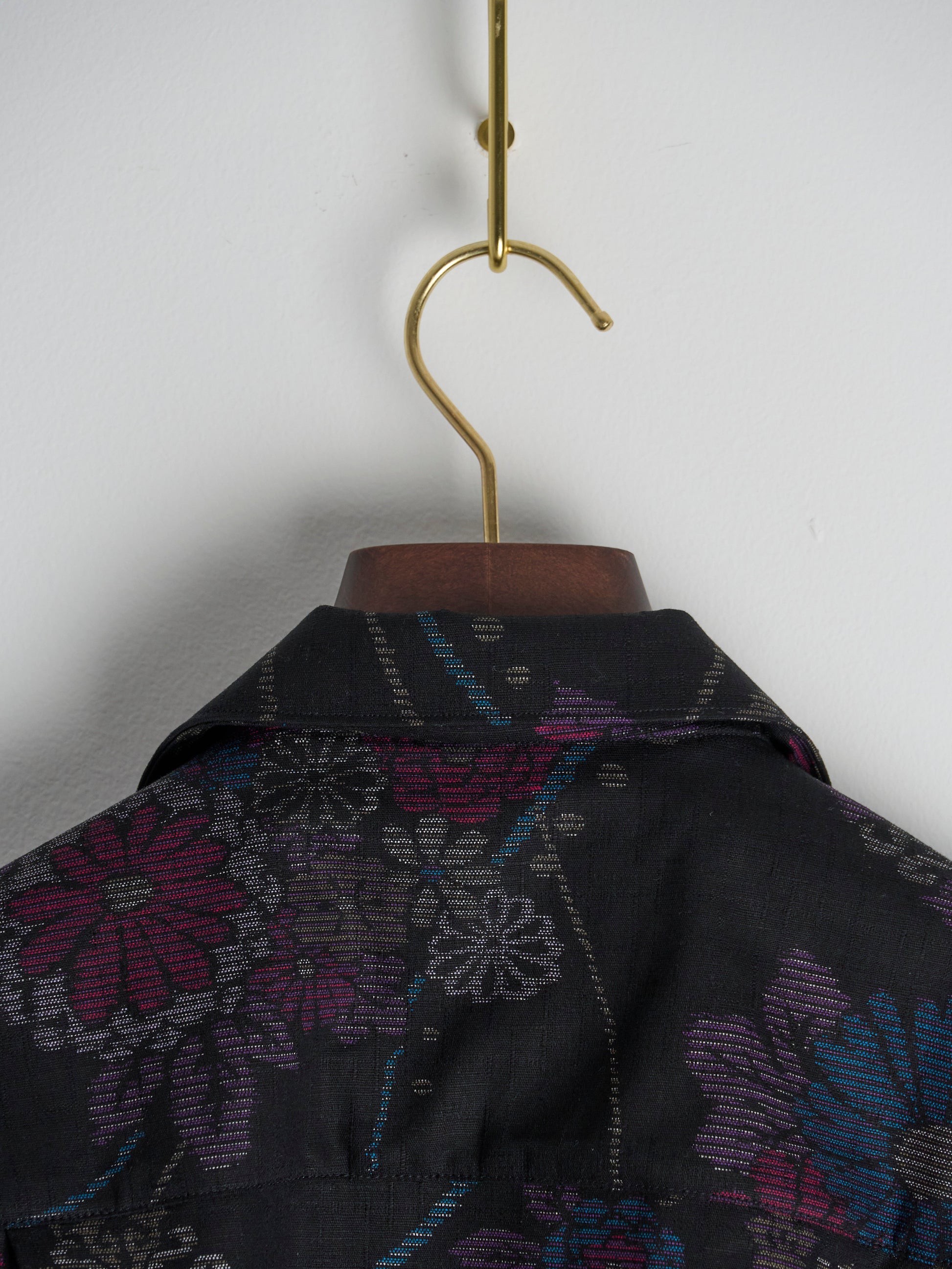 - Unique Bark Cloth: Experience the unique texture of top dyed floral bark cloth, lending the shirt a substantial feel with an artisan touch.